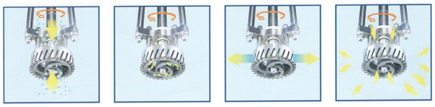 物料在水鍋、油鍋內(nèi)通過加熱、攪拌進行混合反應后,由真空泵吸入乳化鍋,通過乳化鍋內(nèi)上部的攪拌、聚四氯乙烯刮板迎合攪拌鍋形體,掃凈刮壁粘料,使被刮取的物料不斷產(chǎn)生新界面,再經(jīng)過葉片與回轉(zhuǎn)葉片的剪斷、壓縮、折疊,使其攪拌、混合而向下流往鍋體下方的均質(zhì)器處,物料再通過旋轉(zhuǎn)的切割輪與固定的切割套之間所產(chǎn)生的強力的剪斷、沖擊、亂流等過程,在剪切縫中被切割,破碎成200nm-2um的微粒,由于乳化鍋內(nèi)處于真空狀態(tài),物料在攪拌過程中產(chǎn)生的氣泡被抽走。